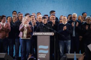En su intervención, el ex ministro de Economía resaltó: “La unidad de la boleta de Fuerza Patria terminó con una victoria aplastante. Gracias Sergio, gracias Cristina, injustamente condenada, quien tendría que estar en este escenario”.
