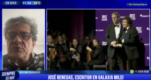 José Benegas es escritor, abogado, ensayista, autor del libro “El evangelio según Javier”, “que viene de la familia liberal, de hecho, se sigue reivindicando como liberal, pariente lejano o no tan lejano de los Benegas Lynch”, lo presentó Juan González.