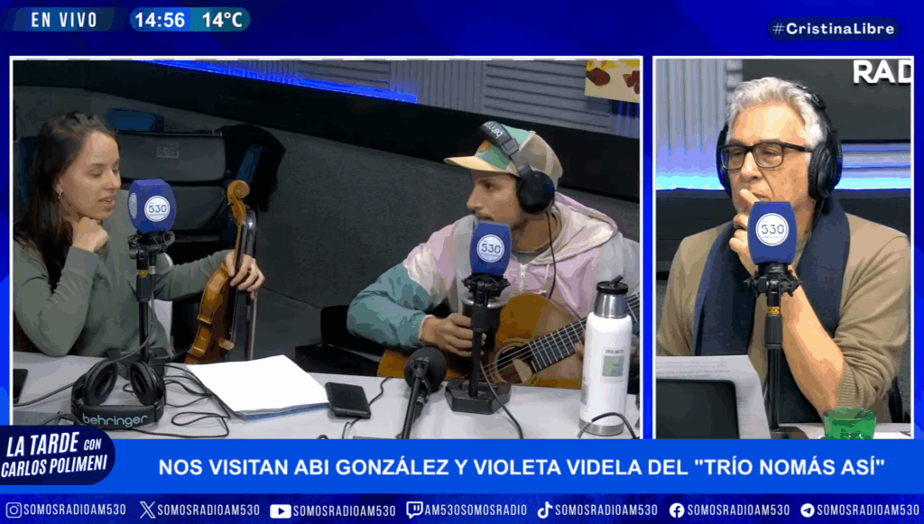 En diálogo con Carlos Polimeni y equipo en La Tarde Con Carlos Polimeni (AM 530 – Somos Radio, lunes a viernes de 14 a 16) los músicos del trío Nomás Así se presentaron en la Radio de las Madres con el repertorio de su primer disco.