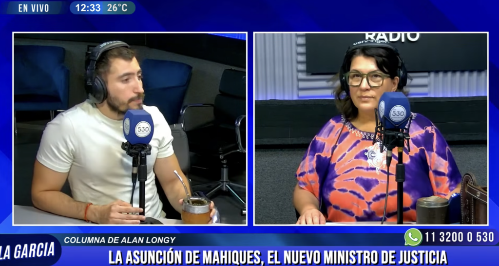 En este marco, señaló que el nombramiento de Mahiques se origina a partir de que los Menem. El vínculo es Mahiques y Martín Menem. Menem le presenta a Mahiques a Karina y Karina se lo presenta a Javier Milei, no así con Santiago Viola, que Santiago Viola se acerca a los Milei a partir de una situación que vivió en el marco de la pandemia, donde no podía ingresar su hija de pocos meses al país porque había nacido en Estados Unidos”.