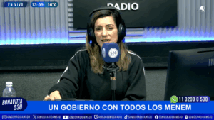 Este lunes en Bonavitta En 530, Felicitas Bonavitta dedicó su editorial a analizar el escándalo de coimas que sacude al gobierno de Javier Milei. Bajo el título “La mejor defensa de Milei son los Menem”, la conductora sostuvo que en medio de las filtraciones y acusaciones “la mejor defensa, o por lo menos la única que tienen los Milei, son los Menem. Es lo único que vimos hasta acá”. En ese sentido, remarcó que varios integrantes de esa familia “coparon gran parte del gobierno” y que sus apariciones mediáticas parecen más un intento de blindaje personal que de respaldo al Presidente.