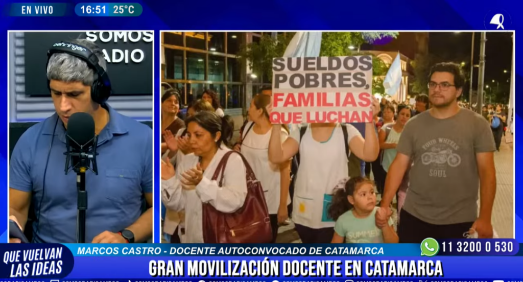 En diálogo con Pablo Caruso y equipo en Que Vuelvan Las Ideas (AM 530 – Somos Radio, lunes a viernes de 16 a 18) el docente autoconvocado de Catamarca se refirió a la situación del sector en la provincia.