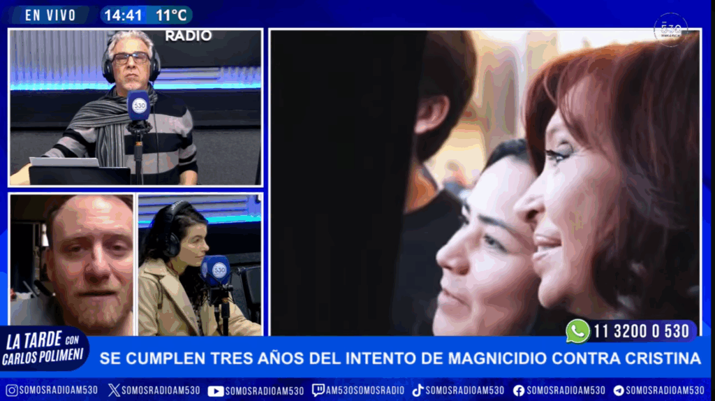 En el marco de su columna en La Tarde Con Carlos Polimeni (AM 530 – Somos Radio, lunes a viernes de 14 a 16) el periodista se refirió al intento de asesinato a la ex presidenta a tres años del hecho.