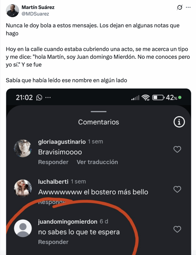 Nos solidarizamos con Martín y exigimos a las autoridades que investiguen la amenaza.