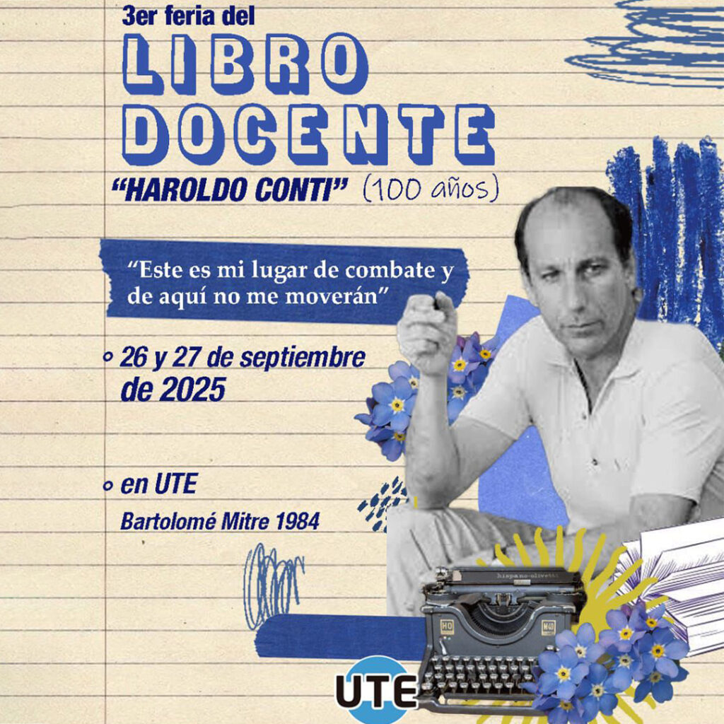 Este viernes 26 y sábado 27 de septiembre, en la sede de UTE se desplegará la tercera edición de la Feria del Libro Docente dedicada a Haroldo Conti.