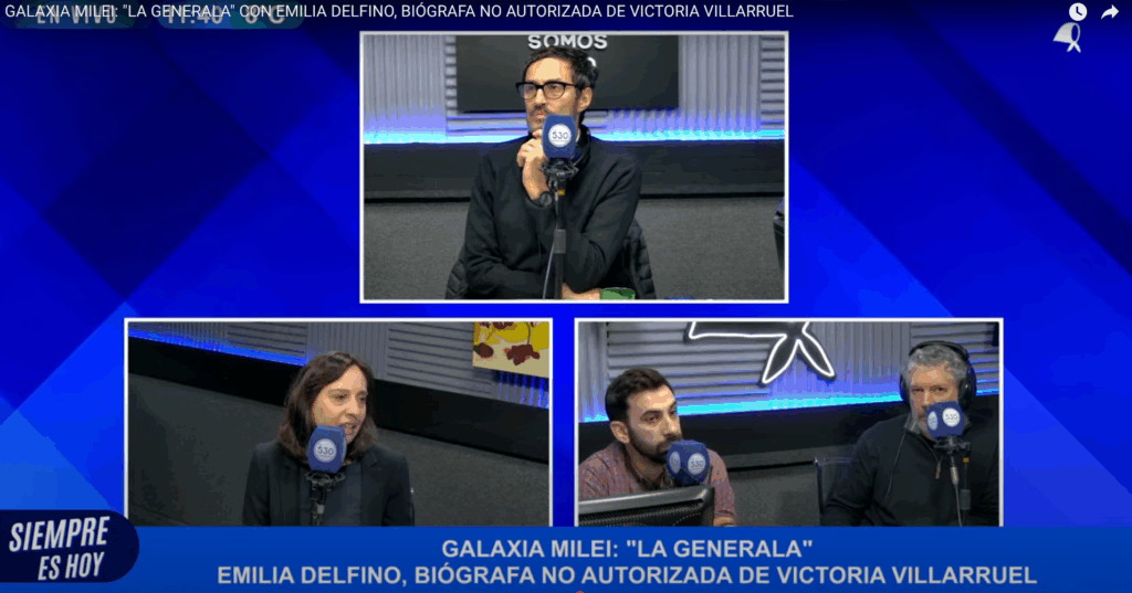 La discusión partió del libro La Generala, biografía escrita por Emilia Delfino, donde se reconstruyen las expresiones y acciones políticas de Villarruel en relación a los crímenes de la dictadura. Se remarcó cómo su relato plantea una reinterpretación de los años del terrorismo de Estado, no desde una búsqueda de justicia sino desde una reivindicación de los ejecutores del genocidio.
